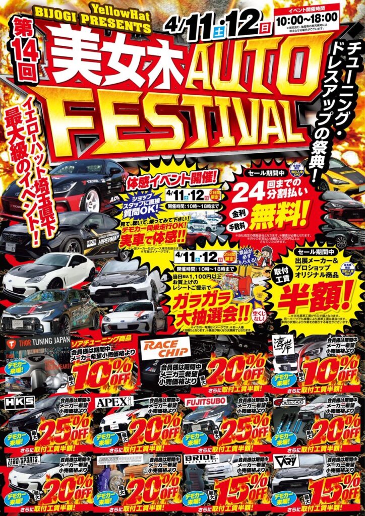 4月11日(土)/12日(日)開催のイエローハット美女木店(埼玉)のオートフェスティバルに出展します